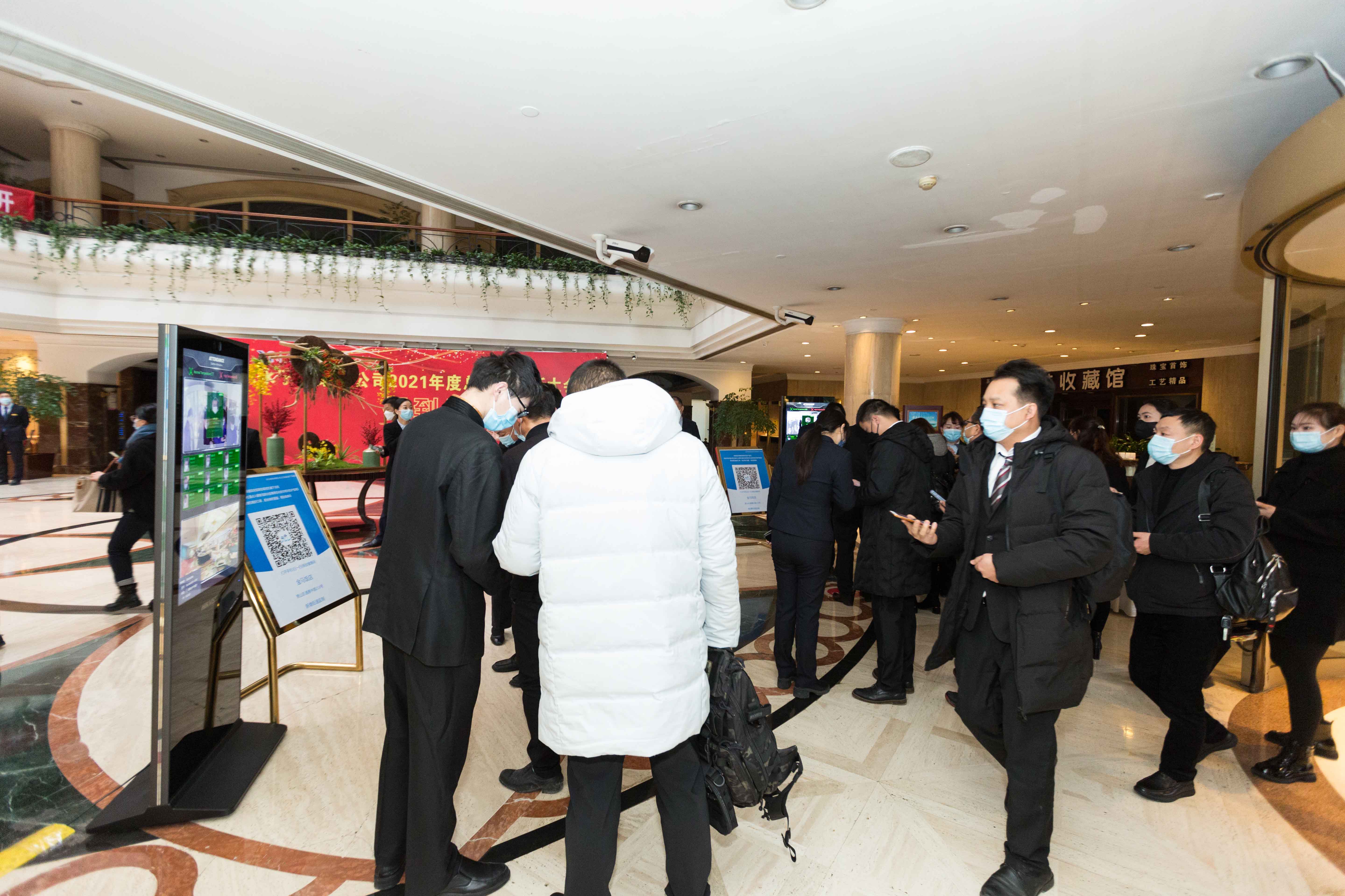 聚会代表排队依次经由严密的疫情防控检测