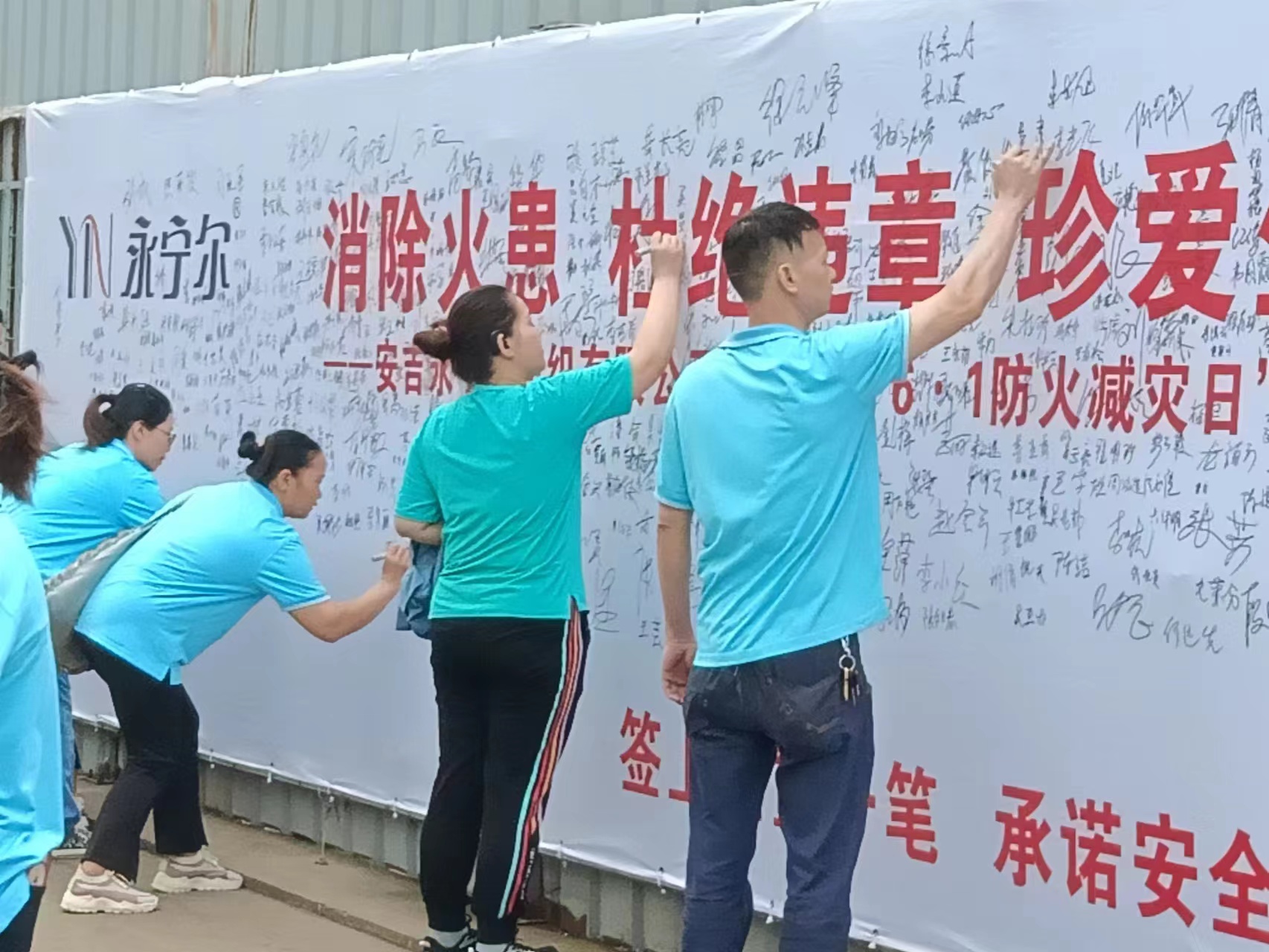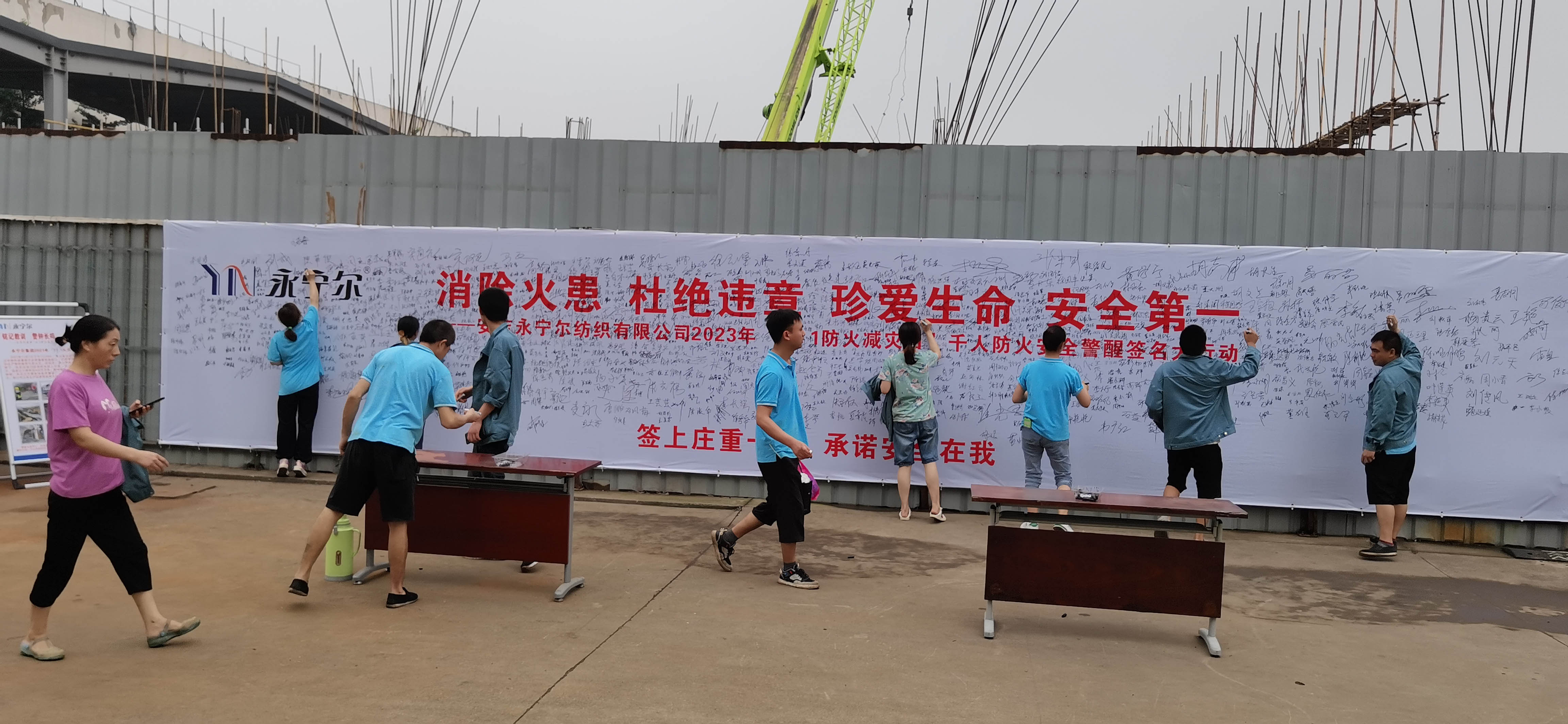 bifa必发集团萧山、安吉两大基地2023年“6?1防火减灾日”系列活动之一:千人消防清静警醒署名大行动”实况图