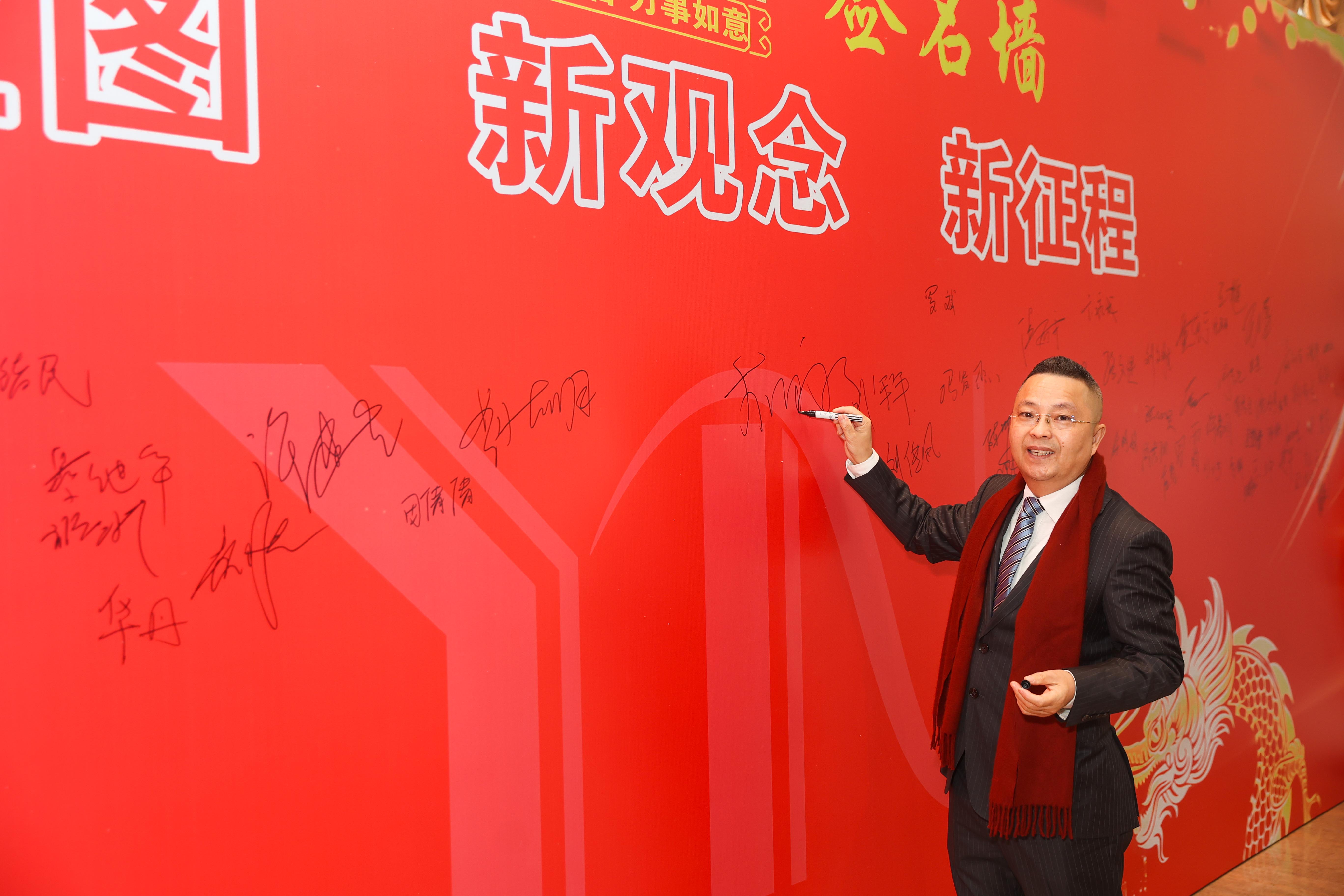 部分聚会代表在“共赢2024”署名墙上署名留影
